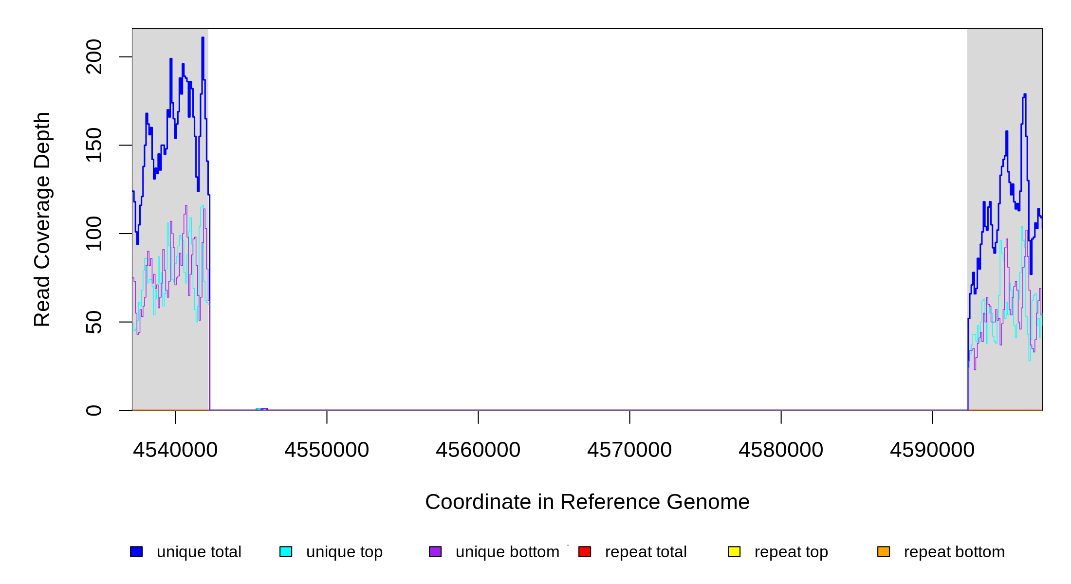 | seq id | start | end | size | ←reads | reads→ | gene | description | |||