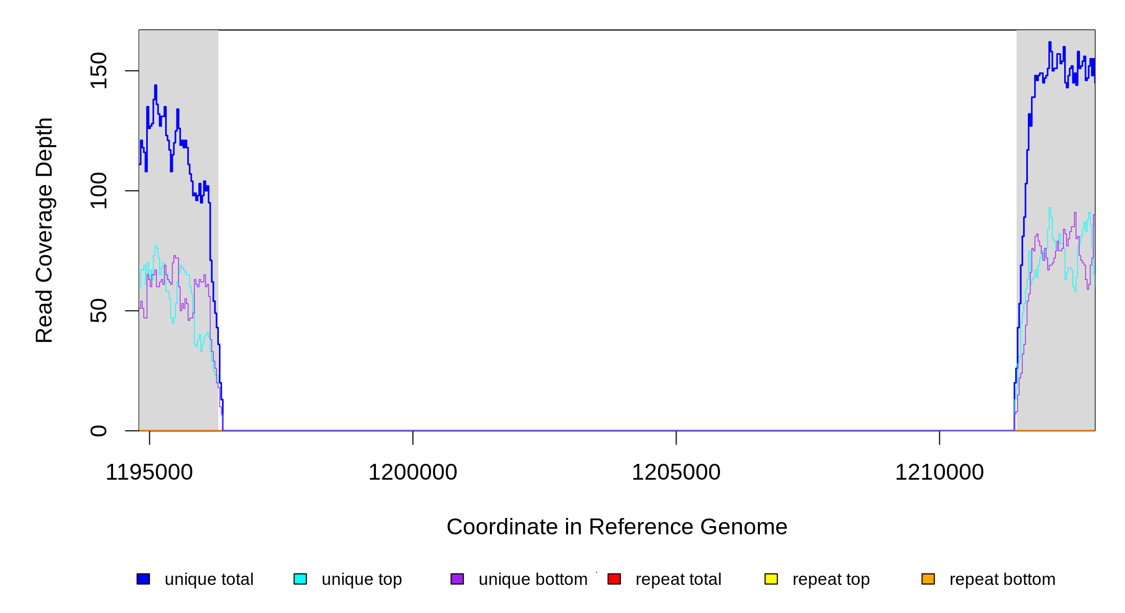 | seq id | start | end | size | ←reads | reads→ | gene | description | |||