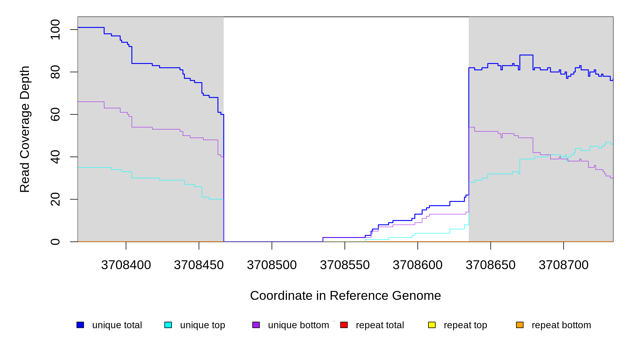| seq id | start | end | size | ←reads | reads→ | gene | description | |||