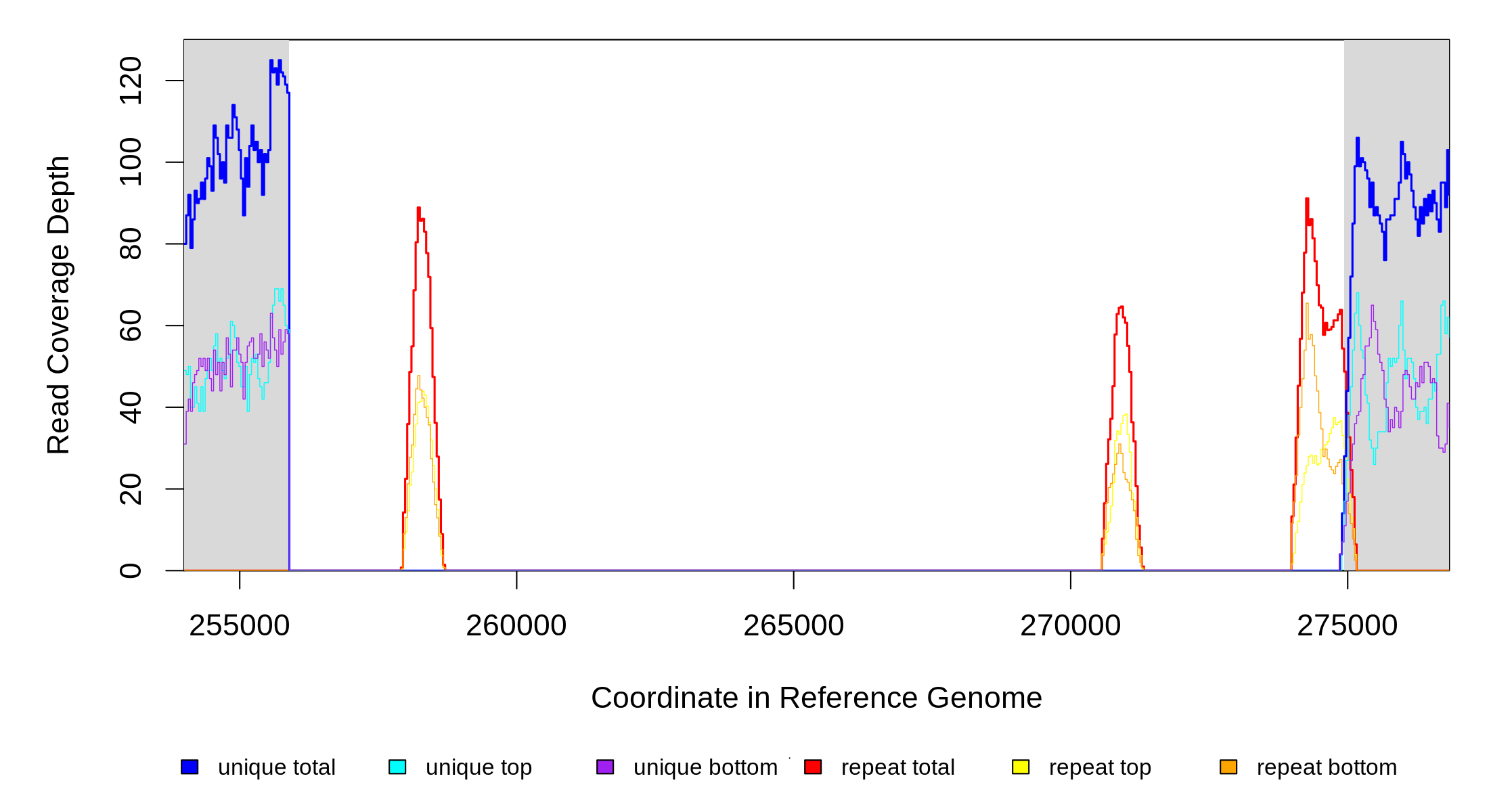 | seq id | start | end | size | ←reads | reads→ | gene | description | |||