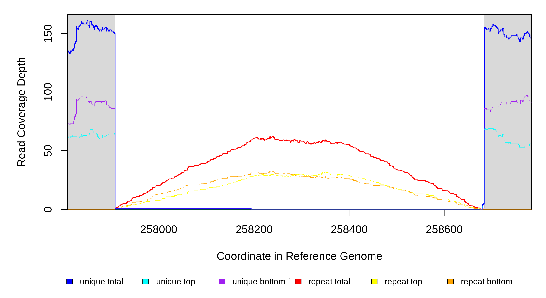 | seq id | start | end | size | ←reads | reads→ | gene | description | |||