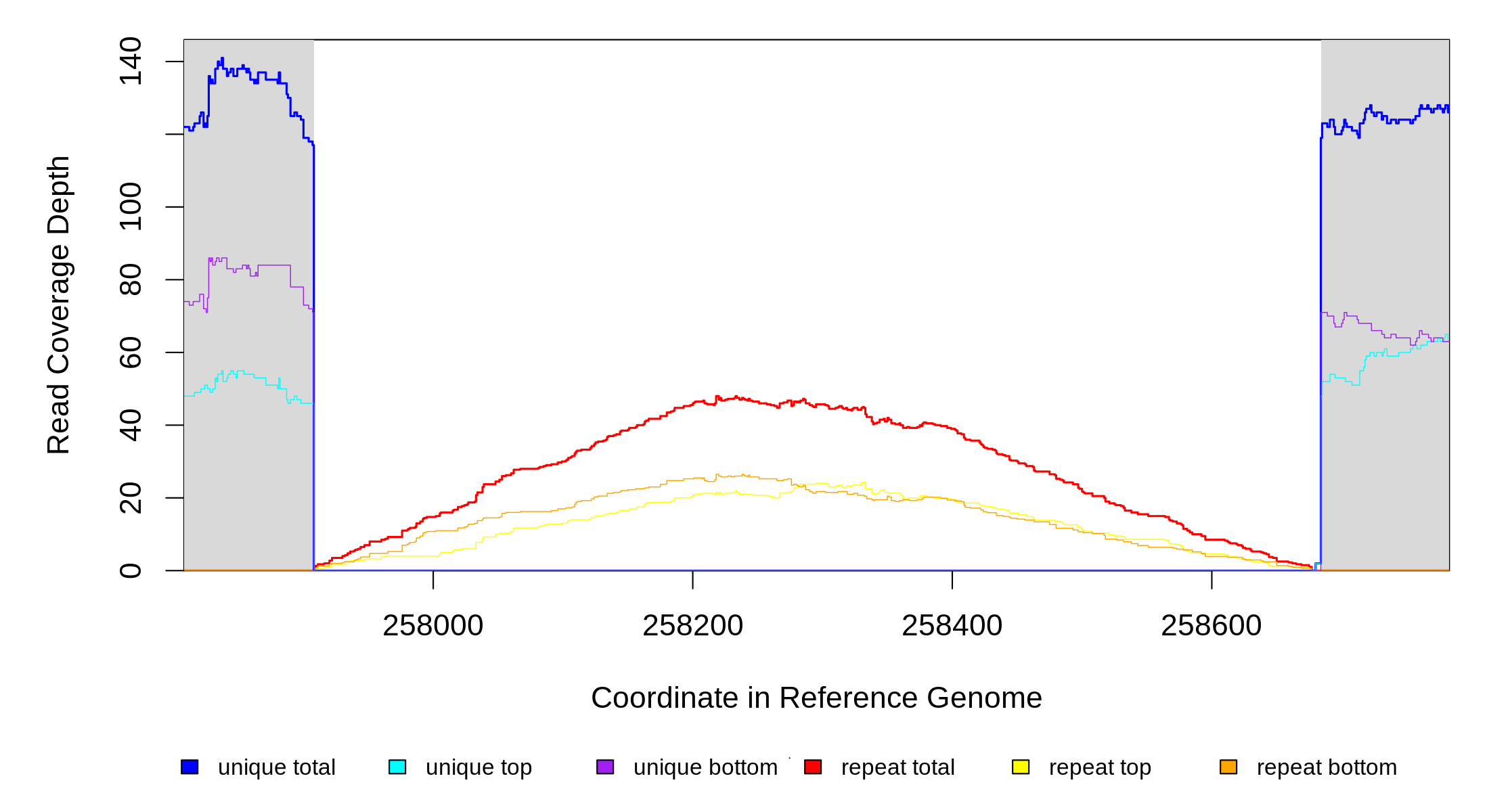 | seq id | start | end | size | ←reads | reads→ | gene | description | |||