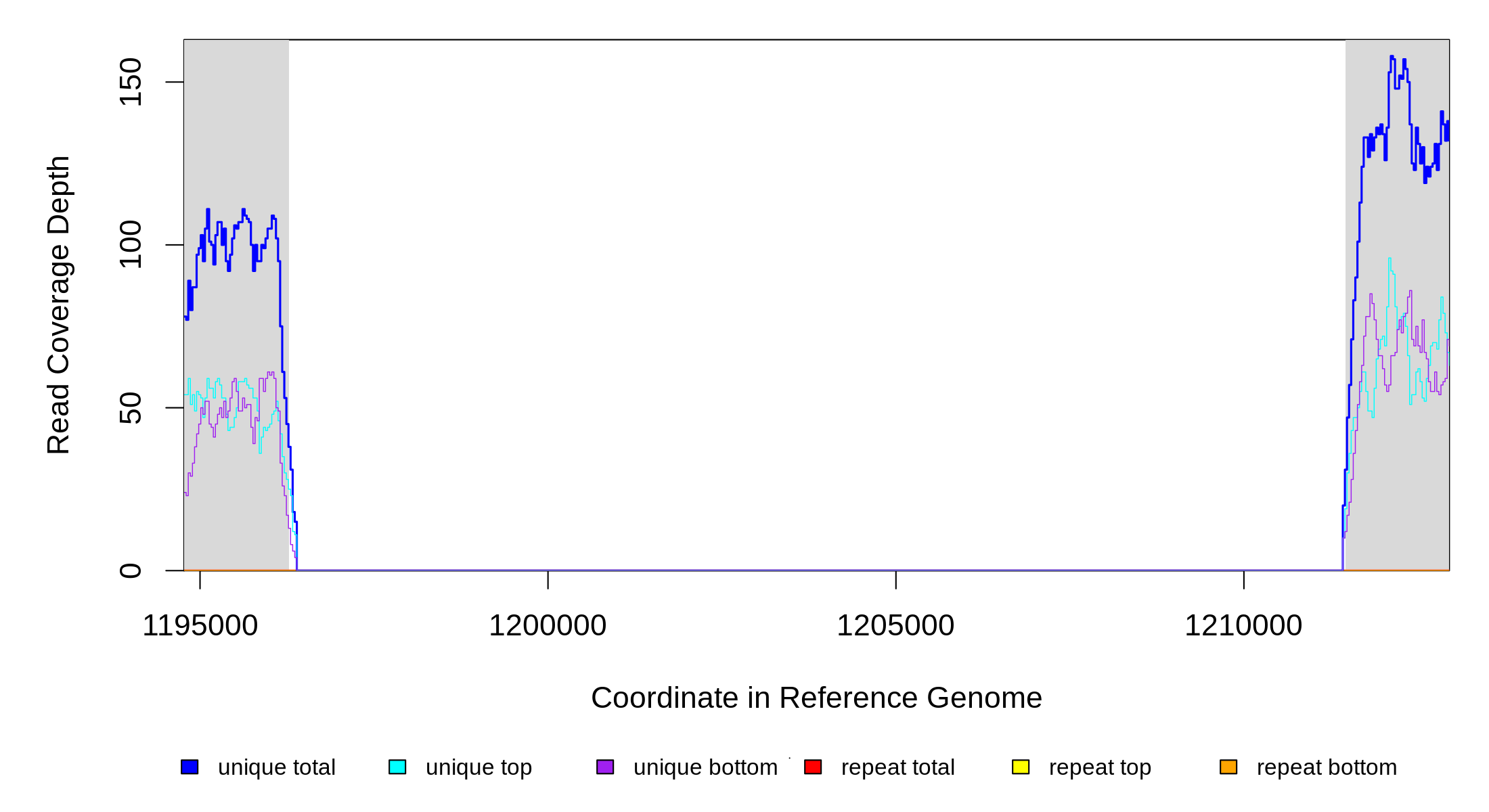 | seq id | start | end | size | ←reads | reads→ | gene | description | |||