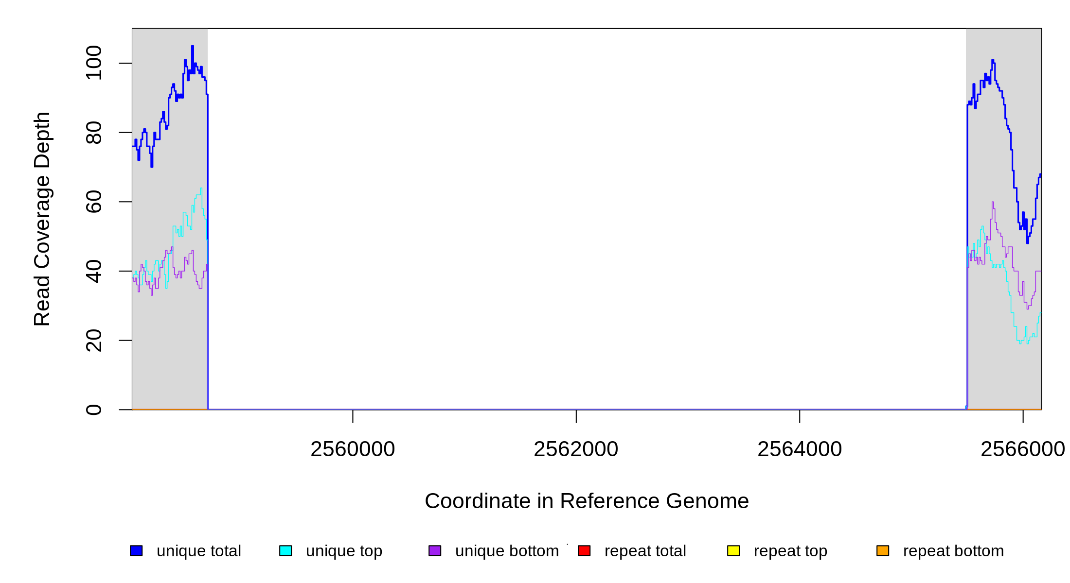 | seq id | start | end | size | ←reads | reads→ | gene | description | |||