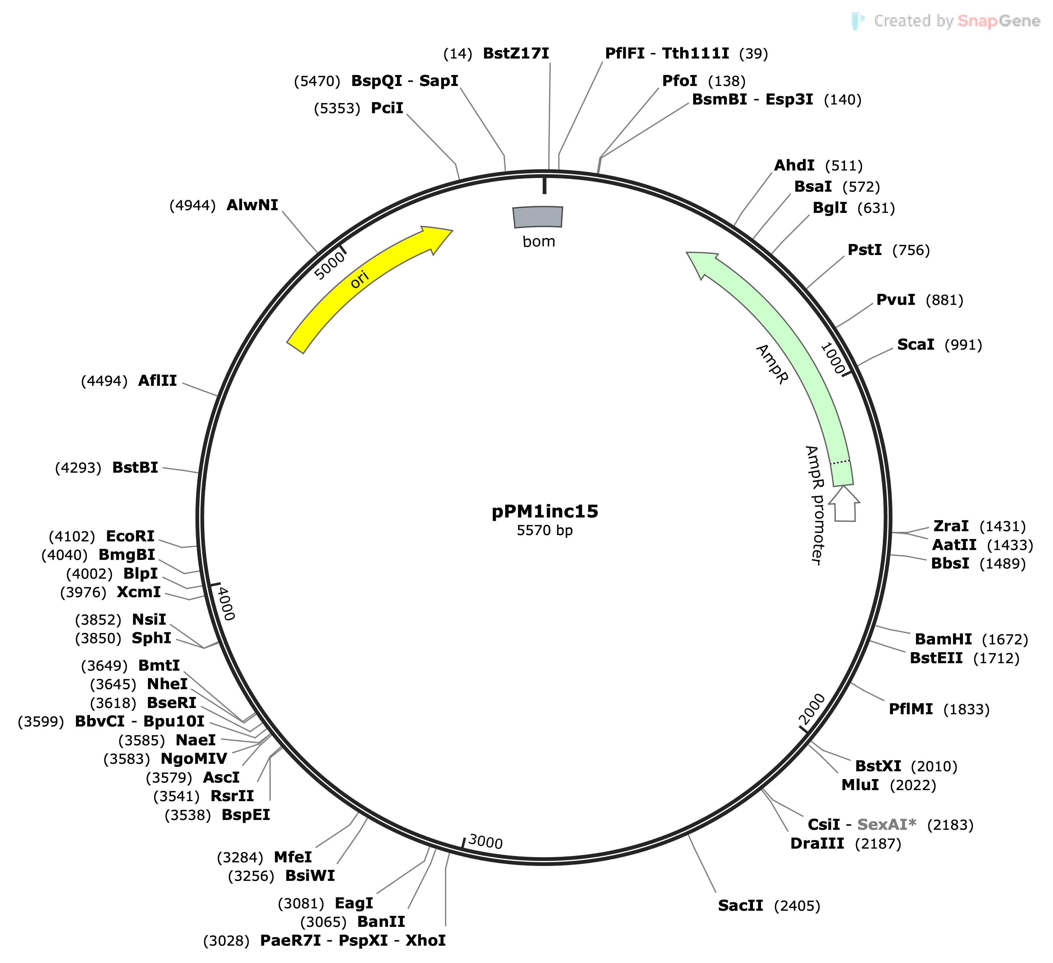 | pPM1inc15 | pSF1050 | 5.57 | High Copy Number | amp | pPM1inc15 Map.png |