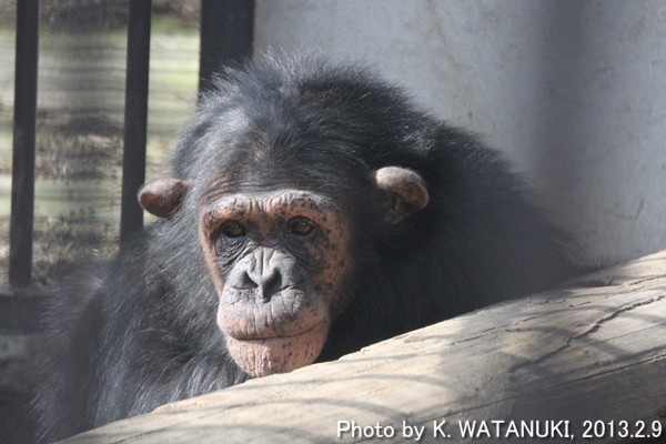 | This individual is a dependent child. He soon approaches humans. If he is not taken care of, it soon gets sulky. In Miyazaki-city Phoenix Zoo, he was naughty, and it often jumped on and played with Yohichi -> Pan (0642), a younger ape. At present, he is calm and harmless. He gently approaches other animals such as dogs, cats, and rabbits in the park, and he can hold these animals. | |||||||||||||||||