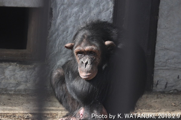 | The individual's ears are large compared to his face. His body is small. He likes a blanket. He often observes the outside while wearing a blanket on his back except for his eyes. He sometimes collects food and performs a tug-of-war with a visitor using a blanket as a tool. When a blanket is taken by a visitor, he screams in a loud voice. He does not dash water on visitors, but he sometimes throws a lawn in the park or feces to a visitor who behaves to give food but does not. He makes an appeal to those who seem to give food by showing all the performances such as clapping his hands and jumping. He likes sweet foods from humans the most, such as pudding and steamed cake. He dislikes granulated foods, such as kiwi fruit and strawberry. | |||||||||||||||||