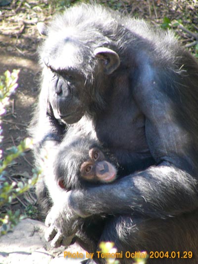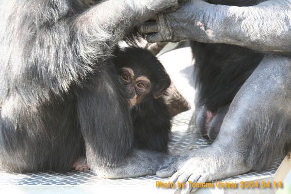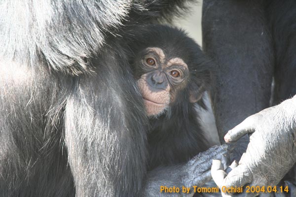 京都大学霊長類研究所で生まれる(1710g)。衰弱していたため、生後10日間は人工保育。その後、母親プチの元に返された。プチにとっては3回目の出産で、初めての子育てだった。 |