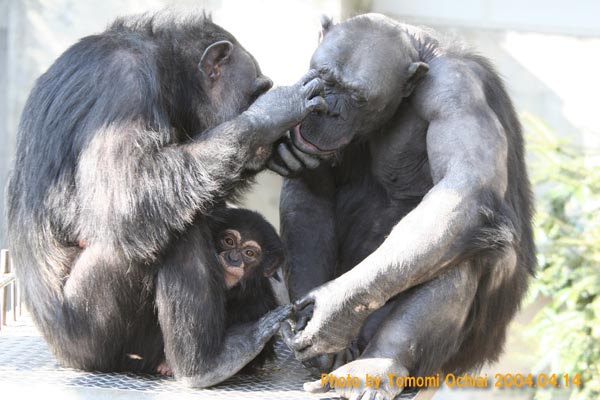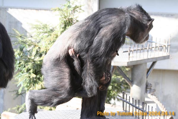 発達検査で下半身の麻痺が発見される。生後9ヶ月のときに体調を崩してから、時々、群れの仲間たちと交流をしながら、お母さんと二人での生活を送っていた。 |