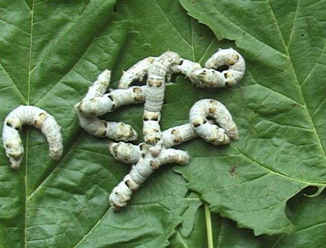 Spontaneous;a pair of large yellowish brown spots on dorsal side of each segment, mostly from fifth to eighth segments: Markings of LC(Caltroptype multilunar) similar to those of L until fourth instar then changing to a caltrop-shaped pattern in fifth instar, homo-lethal: LCa(Brown-spotted caltrop) similar to LC: Dominance LCa > LC > L.