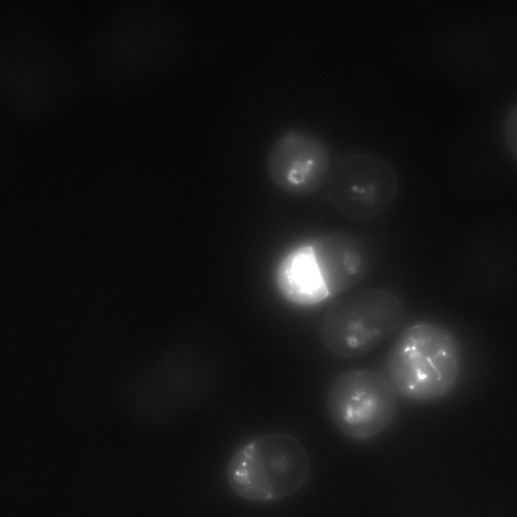 粒状に強く光っている。核がわかりにくい。